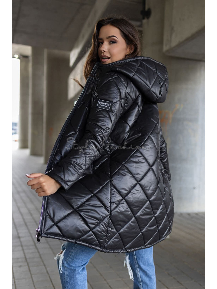 Kvalitná prechodná mierne zateplená bunda s kapucňou, vreckami so zapínaním na zips.